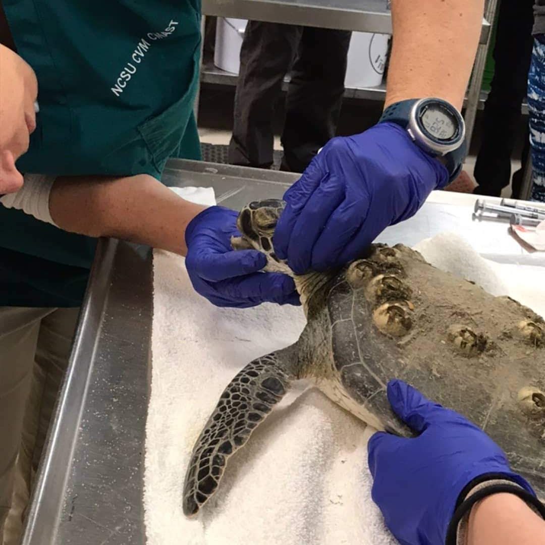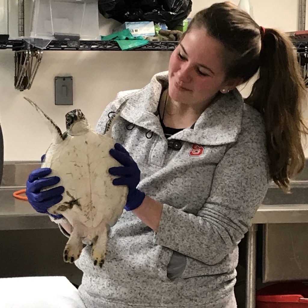In the spring of 2019, I studied at NC State’s satellite campus in Morehead City, NC- The Center for Marine Science and Technology (CMAST). On our first night at CMAST, a flotilla of cold-stunned sea turtles came ashore. I assisted in their assessment and preparation for transport to the nearest sea turtle rescue and rehabilitation center. Throughout my internship at CMAST, I had the opportunity to regularly monitor the progress of these turtles, gaining invaluable hands-on experience in marine animal rehabilitation.